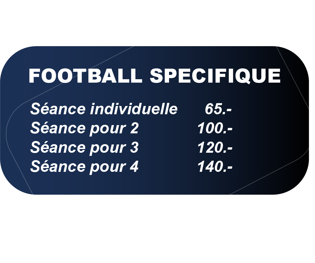 Un entraînement complet pour développer vitesse, endurance, force explosive et agilité. On travaille aussi la technique : contrôle de balle, passes, tirs et jeu sous pression. Côté tactique, tu améliores tes placements, ta prise de décision et ta vision du jeu. La prévention des blessures est au cœur du programme avec mobilité, renfo ciblé et récupération adaptée. Chaque séance est personnalisée selon ton poste, ton niveau et tes objectifs pour progresser efficacement, gagner en confiance et avoir plus d’impact sur le terrain.